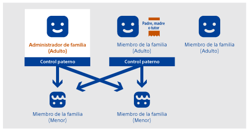 Como padre, madre o tutor, puedes establecer el control paterno. El administrador de la familia puede nombrar a otro miembro adulto de la familia como padre, madre o tutor. - Miembros de la familia