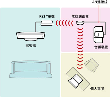 可選擇有線或無線連接PS3™和DLNA伺服器。
