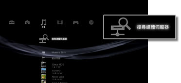啟動PS3™電源後,會自動搜尋位於相同網路內的DLNA伺服器,並於