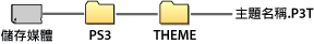 使用電腦從網頁下載或新建主題時,需於儲存媒體內建立名為[PS3]-[THEME]的資料夾,於其中保存主題檔案。請以[.P3T]格式保存主題。
