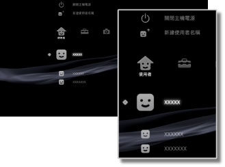 可新建PS3™的使用者名稱或關閉PS3™的電源。登錄多數使用者時,可個別管理每位使用者的:PlayStation®3規格軟件的保存資料、選擇