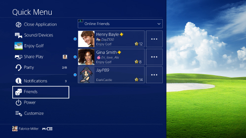 會顯示最新資訊及線上好友數量等等。按下方向按鈕上,會顯示機能畫面。