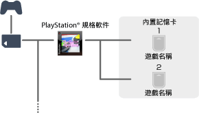 啟動已自PlayStation®Store下載的PlayStation®規格軟件時,系統會自動新建2組內置記憶卡(記憶卡插口1、2)。內置記憶卡會以PlayStation®規格軟件相同的名稱保存。