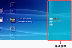 | 播放 | 播放UMD™MUSIC或保存於Memory Stick™或主機記憶體的音樂資料。 |