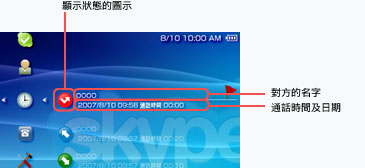 使用PSP-2000/3000系列時,通話記錄會保存至Memory Stick™。