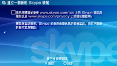 確認 Skype 的使用條款後選擇[決定],按下方向按鈕 。