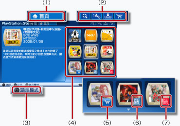 (PlayStation®Store)是能下載(購買)PSP™專用遊戲、遊戲的追加道具、影像內容等商品,PlayStation®Network中的線上商店。
