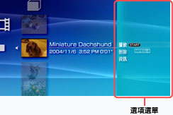 按鈕,會顯示選項選單。可閱覽相關資料或刪除影像檔案。但顯示的圖示可能因選擇之圖示而異。