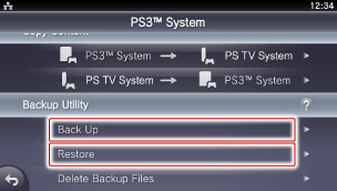 - 備份後若將租借的影像複製(移動)至PS3™,會無法正常進行復原(還原)。