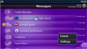 可個別刪除邀請、遊戲通知、重要的最新訊息、來自本主機的最新訊息等。在顯示訊息全文的狀態選擇(選項)>[刪除]。