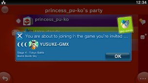 若參加派對的成員邀請您參加遊戲,畫面會顯示訊息。若彼此持有相同的遊戲,選擇[OK]即可一起玩遊戲。