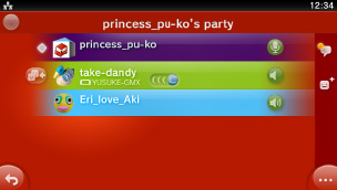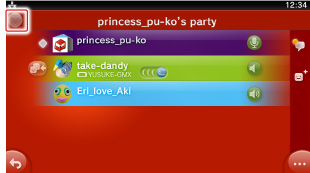(聊天&活動)即可和參加派對的成員進行文字聊天。此外,成員參加/離開派對時或開始遊玩遊戲的活動也會顯示在此畫面。追加聊天訊息或資訊後,會以