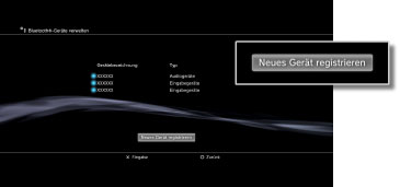 Wählen Sie das Gerät für das Registrieren bzw. Verbinden.mit dem PS3™-System aus. |