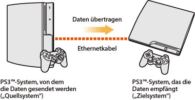 Sie können jetzt Daten, die im Systemspeicher eines PS3™-Systems gespeichert sind, über ein Ethernetkabel in den Systemspeicher eines anderen PS3™-Systems übertragen (kopieren oder verschieben).