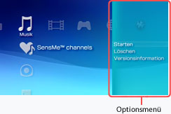 | Löschen | Löschen der Anwendung SensMe™ channels. |