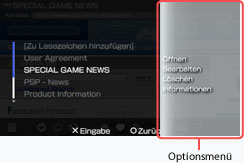 -Taste. Im Optionsmenü können Sie Informationen anzeigen lassen oder Elemente aus [Meine Lesezeichen] löschen.