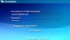 Geben Sie die Anmelde-ID und das Passwort für das PlayStation®Network-Konto ein, das auf dem PS3™-System verwendet wird.