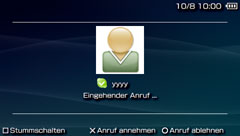 Sie können einen Anruf von einem anderen Skype-Benutzer empfangen. Um Anrufe mithilfe von Skype zu tätigen oder zu empfangen, müssen Sie ein Audioeingabegerät, das Skype für das PSP™-System unterstützt, anschließen.