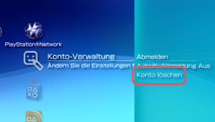 Wenn Sie die Option [Konto löschen] wählen, wird die Zuordnung zwischen dem System und dem PlayStation®Network-Konto aufgehoben. Das PlayStation®Network-Konto selbst wird nicht gelöscht und bleibt auf dem PlayStation®Network-Server registriert. Sie können das Konto auf einem PS3™-System, einem anderen PSP™-System oder einem PC weiterhin verwenden.