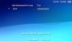 - Sie können bis zu acht Bluetooth®-Geräte bei einem PSP™-System registrieren. Wenn Sie ein Gerät nicht registrieren können, weil die Höchstzahl an Geräten erreicht ist, löschen Sie ein registriertes Gerät und versuchen Sie es erneut.
