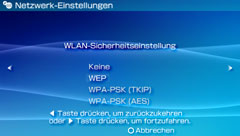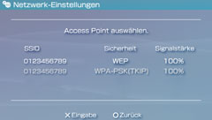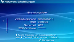 Sie können Netzwerk-Einstellungen konfigurieren, die für die Verbindung zum Internet über einen Zugriffspunkt verwendet werden, und diese auf dem PSP™-System speichern. Sie können bis zu 10 Verbindungen speichern.
