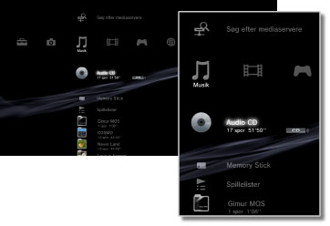PSP™ (PlayStation®Portable) | Afspil musikfiler, der er gemt på et PSP™-systems Memory Stick™-medier. |