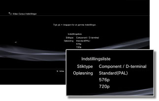 Indstillingsmulighederne for videotilstanden afhænger af det område, PS3™-systemet er købt i. I Nordamerika, Asien og andre NTSC-områder, vises 480i-videotilstand som [Standard(NTSC)]. I Europa og andre PAL-områder, vises 576i-videotilstand som [Standard(PAL)]. Yderligere oplysninger fremgår af instruktionerne, der fulgte med til produktet.