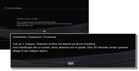 Videooutputindstillingerne gemmes på PS3™-systemet. Du kan nu fortsætte med at angive indstillinger for lydoutput. Yderligere oplysninger om lydoutput findes i denne vejledning under (Indstillinger) > (Lydindstillinger) > [Audio Output Settings] .