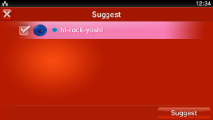 Marker afkrydsningsfelterne for at vælge de venner, som du anbefaler inviteret til partyet, og vælg derefter [Foreslå].