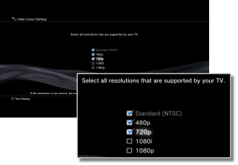 - If the video output settings do not match those required for the TV in use, the screen may go blank when the resolution is changed. The screen should, however, automatically go back to its original resolution after a while. If the screen remains blank for more than 30 seconds, turn off the system. Then touch the power button on the system front for at least five seconds to turn the system on again. The video output settings will automatically be reset to the standard resolution.