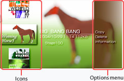 button to display the options menu. Menu items vary depending on the icon selected.