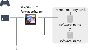 Two internal memory cards (for MEMORY CARD slots 1 and 2) are created automatically when you start PlayStation® format software that was downloaded from PlayStation®Store. The memory cards are saved using the same name as the PlayStation® format software.