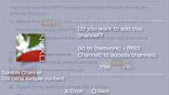 Start the Internet browser. If you want to add channels to Memory Stick™ media, you must first insert the Memory Stick™ media into the PSP™ system. |