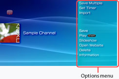 button with an icon selected, the options menu will be displayed. From the options menu you can view information, delete a channel or perform other operations. Options that are displayed vary depending on the selected icon.