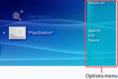 button to display the options menu. From the menu you can delete search history items or edit a keyword you used previously.