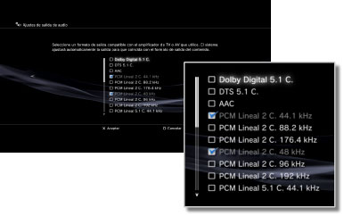 Seleccione los formatos de salida de audio.