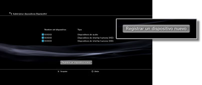 Seleccione el dispositivo que desee registrar o emparejar con el sistema PS3™. |