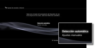 | Automático | Utilice la función de ajuste automático del punto de acceso. Este ajuste está disponible únicamente en las regiones en las que están a la venta sistemas PS3™ compatibles con esta función. Seleccione este ajuste cuando utilice un punto de acceso compatible con la configuración automática. Siga las instrucciones que aparecen en pantalla. |