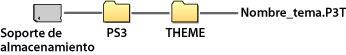 Cuando descargue un tema desde un sitio Web o cree un tema mediante un PC, cree una nueva carpeta con el nombre [PS3] - [THEME] en el soporte de almacenamiento y, a continuación, almacene el tema en dicha carpeta. Los archivos de tema se deben guardar con la extensión [.P3T].