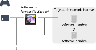 Al iniciar el software de formato PlayStation® descargado de PlayStation®Store, se crean automáticamente dos tarjetas de memoria internas (para las ranuras MEMORY CARD 1 y 2). Las tarjetas de memoria se guardan con el mismo nombre que en el software de formato PlayStation®.
