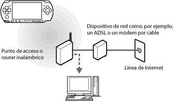 El router es necesario si va a conectar un ordenador y el sistema PSP™ a Internet al mismo tiempo. Un router es un dispositivo que permite que varios dispositivos se conecten a una línea de Internet.