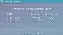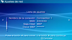 Es posible crear ajustes de red para utilizarlos en la conexión a Internet a través de un punto de acceso y guardarlos en el sistema PSP™. Se pueden guardar hasta 10 conexiones.