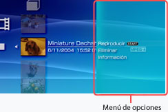 Seleccione un icono y, a continuación, pulse el botón para visualizar el menú de opciones. Los elementos del menú varían en función del icono seleccionado.
