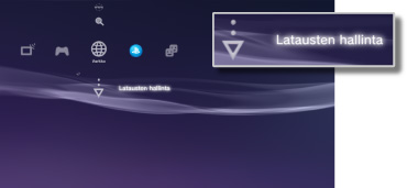 - Jos PS3™-järjestelmä sammutetaan taustalatauksen aikana, lataustiedot tallennetaan. Lataus jatkuu automaattisesti, kun PS3™-järjestelmään kytketään taas virta ja järjestelmä liitetään Internetiin.