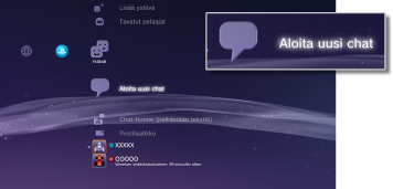 (Chat-huone (pelkästään tekstiä)). Voit palata pelinäyttöön painamalla PS-näppäintä. - Voit liittyä enintään kolmeen chat-huoneeseen samanaikaisesti. Jos liityt neljänteen chat-huoneeseen, sinut poistetaan ensimmäisestä chat-huoneesta automaattisesti.