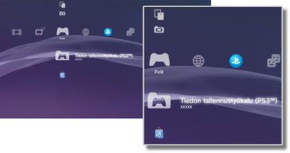 Tiedon tallennustyökalu (PS3™) | Kopioi tai poista PlayStation®3-muotoisen ohjelmiston tallennettuja tietoja tai katsele niiden sisältöä. |