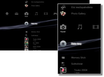 Digitaalikamera | Katsele kuvatiedostoja, jotka on tallennettu PS3™-järjestelmän kanssa yhteensopivaan digikameraan. |