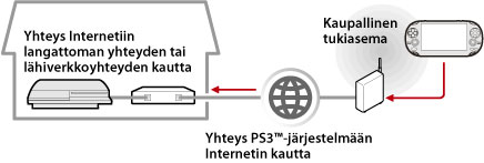 Voit muodostaa etäkäyttöä tukevalla laitteella, kuten PS Vita -järjestelmällä tai PSP™-järjestelmällä, yhteyden PS3™-järjestelmään Internetin kautta langattoman tukiaseman avulla. Etäkäyttö edellyttää, että PS3™-järjestelmä on etäkäytön valmiustilassa.