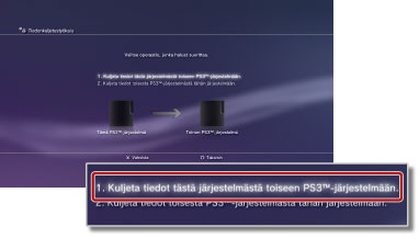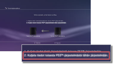 Valitse [2. Kuljeta tiedot toisesta PS3™-järjestelmästä tähän järjestelmään.].