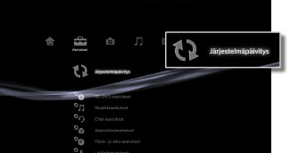 - Päivitystietoja saattaa olla myös joillakin pelilevyillä, kaupasta hankittavissa BD-video-ohjelmistoissa ja muilla levyillä. Kun toistat levyä, jolla on päivitystietoja, näyttöön tulee päivitysohje. Päivitä järjestelmä noudattamalla näyttöön tulevia ohjeita.